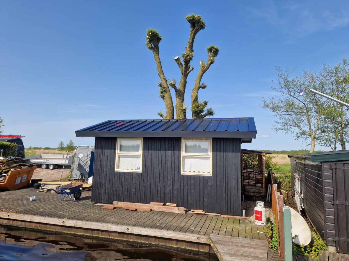 In opdracht van Bakker Timmerwerken hebben wij deze prachtige woonboot mogen bekleden met geïsoleerde dakpanelen, zetwerk en een speciale goot. Als dakpaneel is er gekozen voor een KS1000RW in de kleur XL FORTE Black. Het zetwerk voor de afwerking is ook in dezelfde kleur uitgevoerd.
